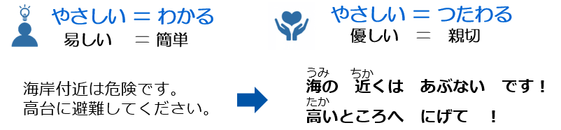 普通の日本語より簡単で、外国の方に分かりやすいように配慮した日本語。