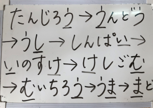 ①打完招呼后,是「词语接龙」的热身运动