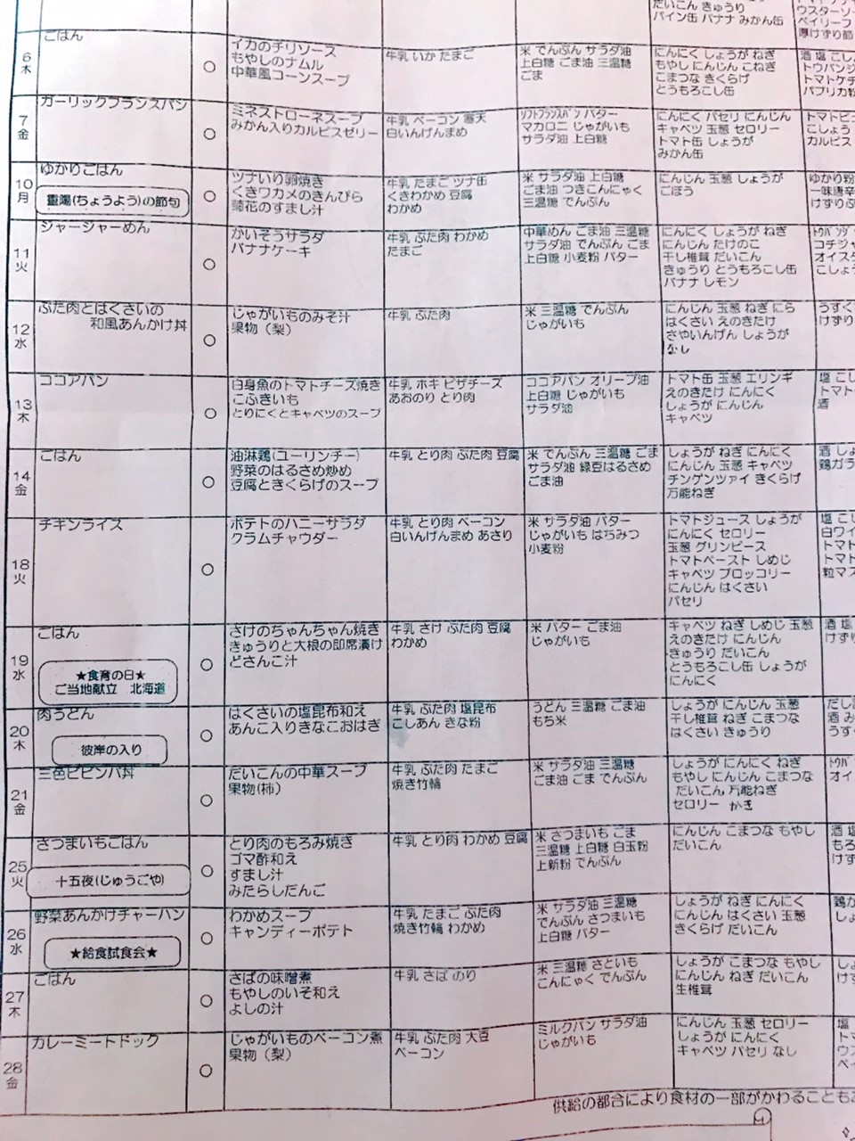 給食の献立といえば、いくつかのメニューをリピートしていて、たまにイベントがあるときは新しいメニューがでたりするくらいだったように思います。